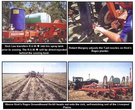 Sunflowers at Pine Ridge.Now in their 4th big year.In the past issues we've seen the outstanding results achieved by Nick & Prue Lee on 'Bindaree', their Pine Ridge, NSW property. This season we decided to get in early and pick up some tips as their next crop of sunflowers went into the ground. As you can see below, Nick was pumping R.U.M. Liquid Plant Food into his spray tank when we arrived on the Liverpool Plains. Because pictures of sowing rigs always generate phone calls from interested farmers, we asked Nick to describe his 'sunflower' set up.